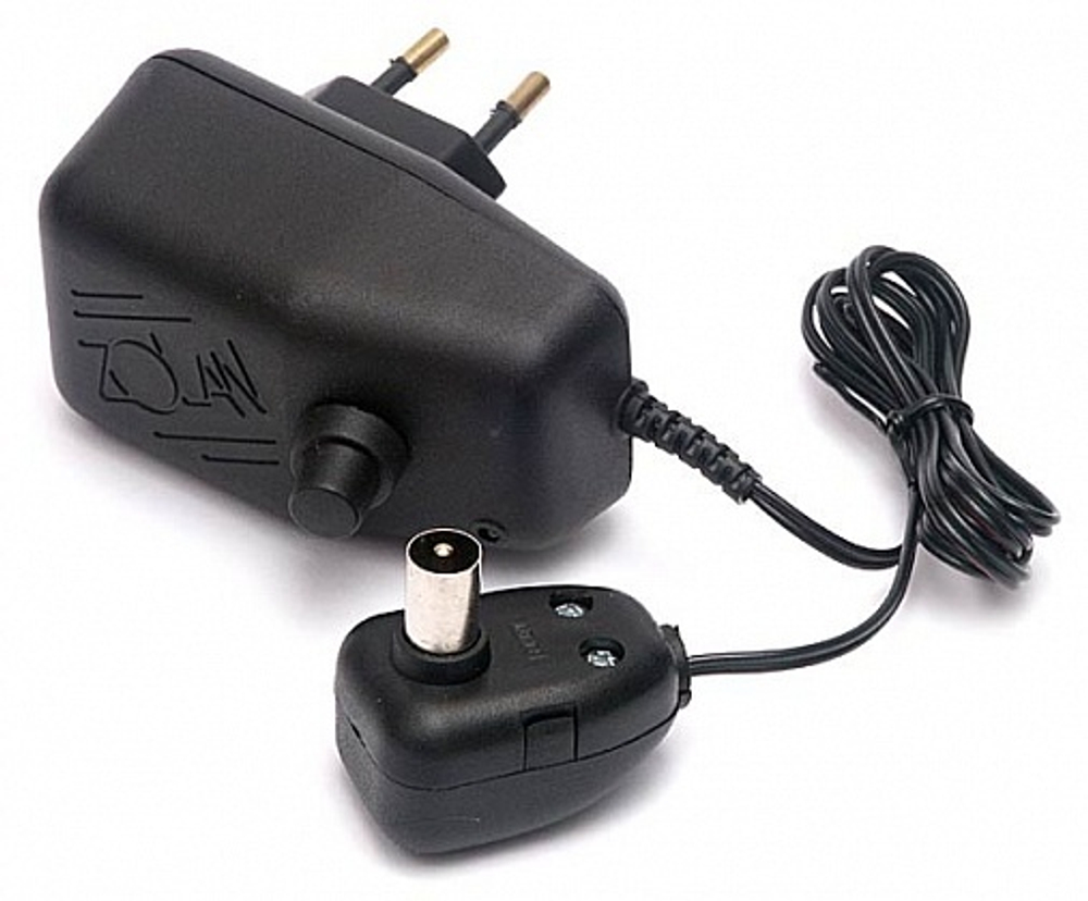Данная модель позволяет обеспечивать питанием активную эфирную антенну через антенный кабель. Так же можно запитывать не только тот усилитель, что располагается в антенне, но и тот, что находится в разрезе провода. У блока питания имеется возможность регулирования напряжения. Регулятор предназначается для увеличения или уменьшения выходного напряжения, которое требуется для питания усилителя в эфирной антенне, для наилучшего приема ТВ сигнала. Чтобы подсоединить кабель от антенны в разъем сепаратора, находящемуся на блоке питания, не требуется использовать паяльник, достаточно зачистить провод и закрепить в разъеме.